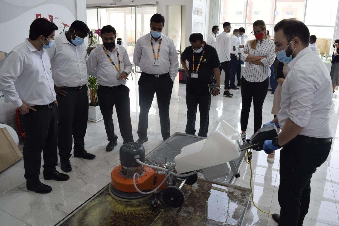 On the 29th of June, AKC’s team pridefully hosted our longtime customers and business associates which operate on a wide scale in the facility management industry. The team had the honor to host Emrill Services LLC, along with Farnek Services LLC, and was excited to guide them through the delightful seminar, and the expressive technical demonstration of our newly acquired technology, which compromises of the LMA Grinding Machines, mainly aimed at stone care restorative innovations.