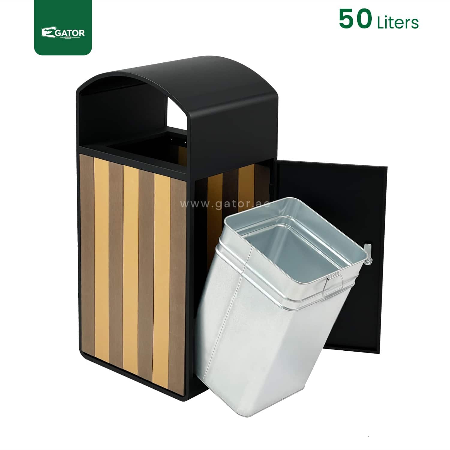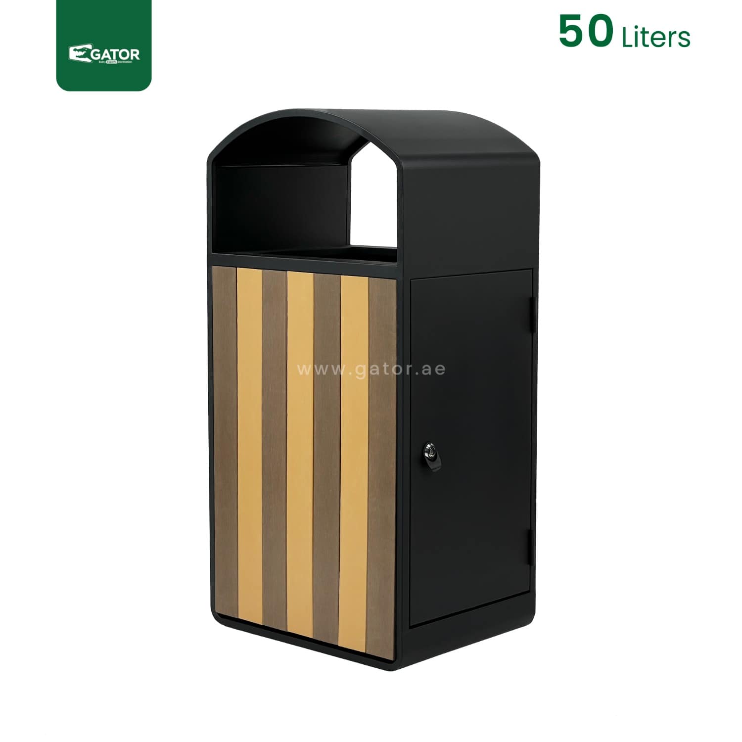 Sophisticated outdoor waste bin featuring vertical wood-effect panels and domed top design. Built with galvanized inner container for enhanced durability and easy maintenance. Modern aesthetic with practical functionality suitable for various outdoor environments. Specifications: Capacity: 50 Liters Dimension: 35W × 90H × 45L cm Material: Iron & Wood/WPC Color: Black frame with wood panels Features: … Read more