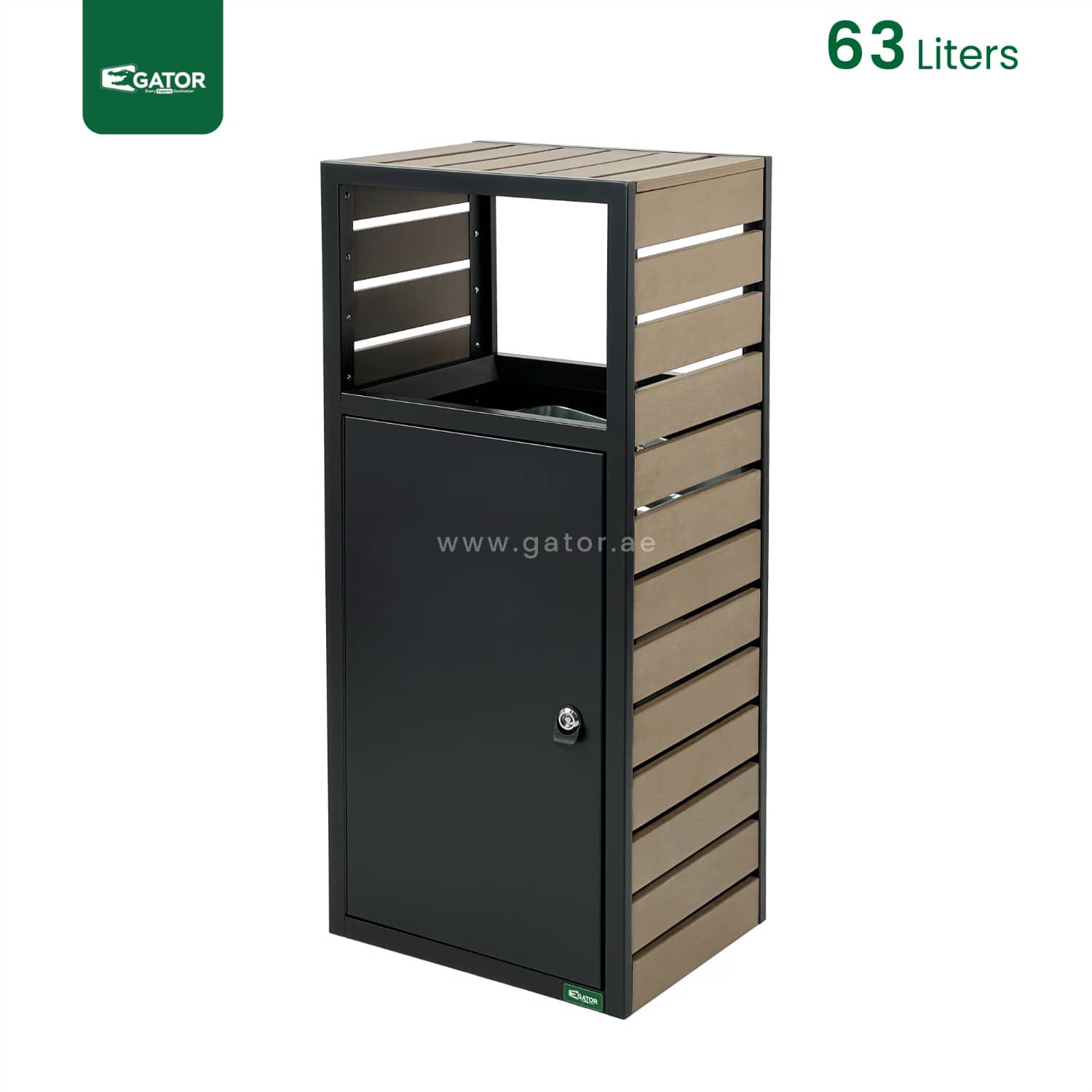 High-capacity outdoor waste bin with durable wood-effect panels and robust construction. Features a galvanized inner container for easy cleaning and maintenance. Secure front-access door with lock system ensures controlled waste management. Specifications: Capacity: 63 Liters Dimension: 31W × 96H × 42L cm Material: Iron & Wood/WPC Thickness: 1.0 mm Color: Brown wood panels with black … Read more