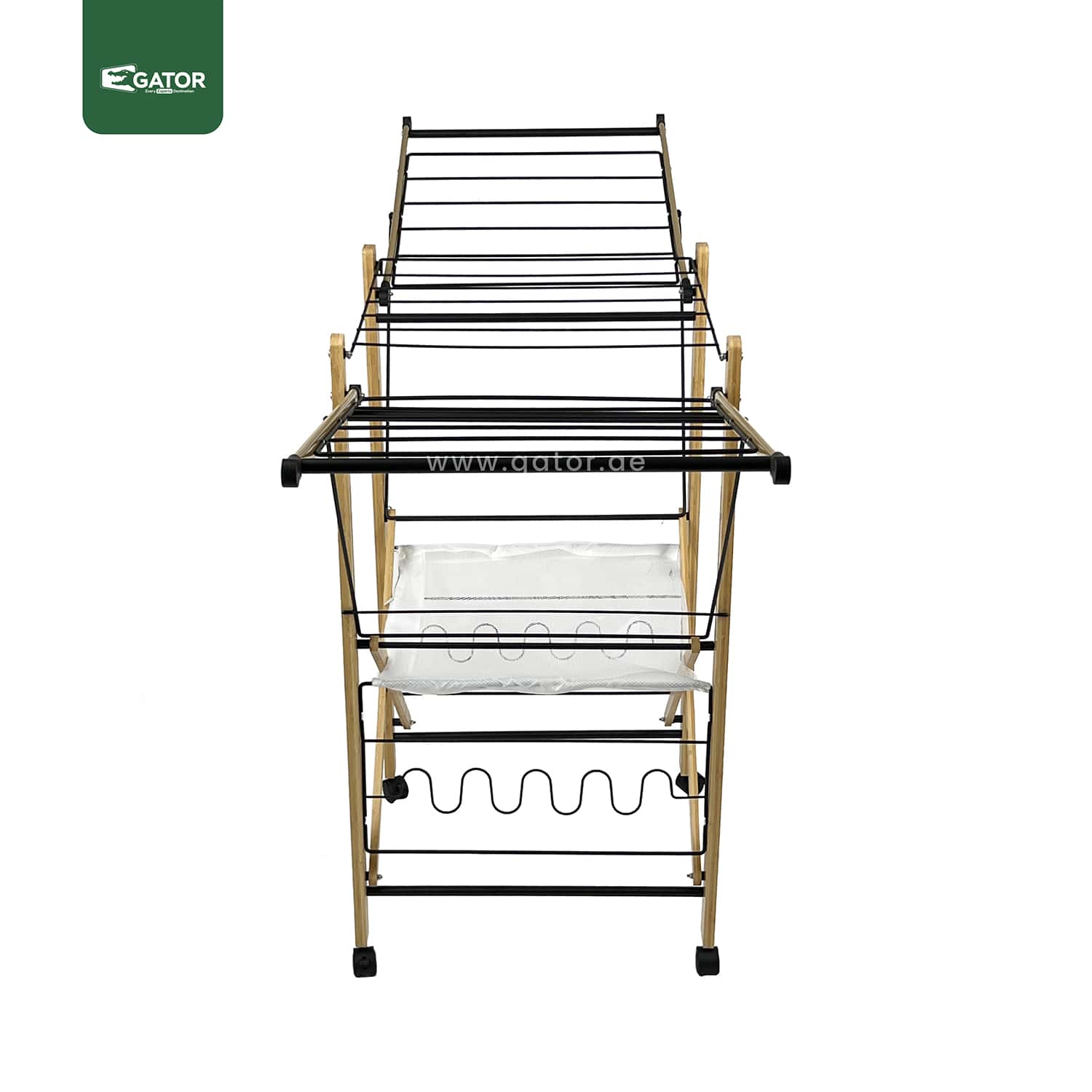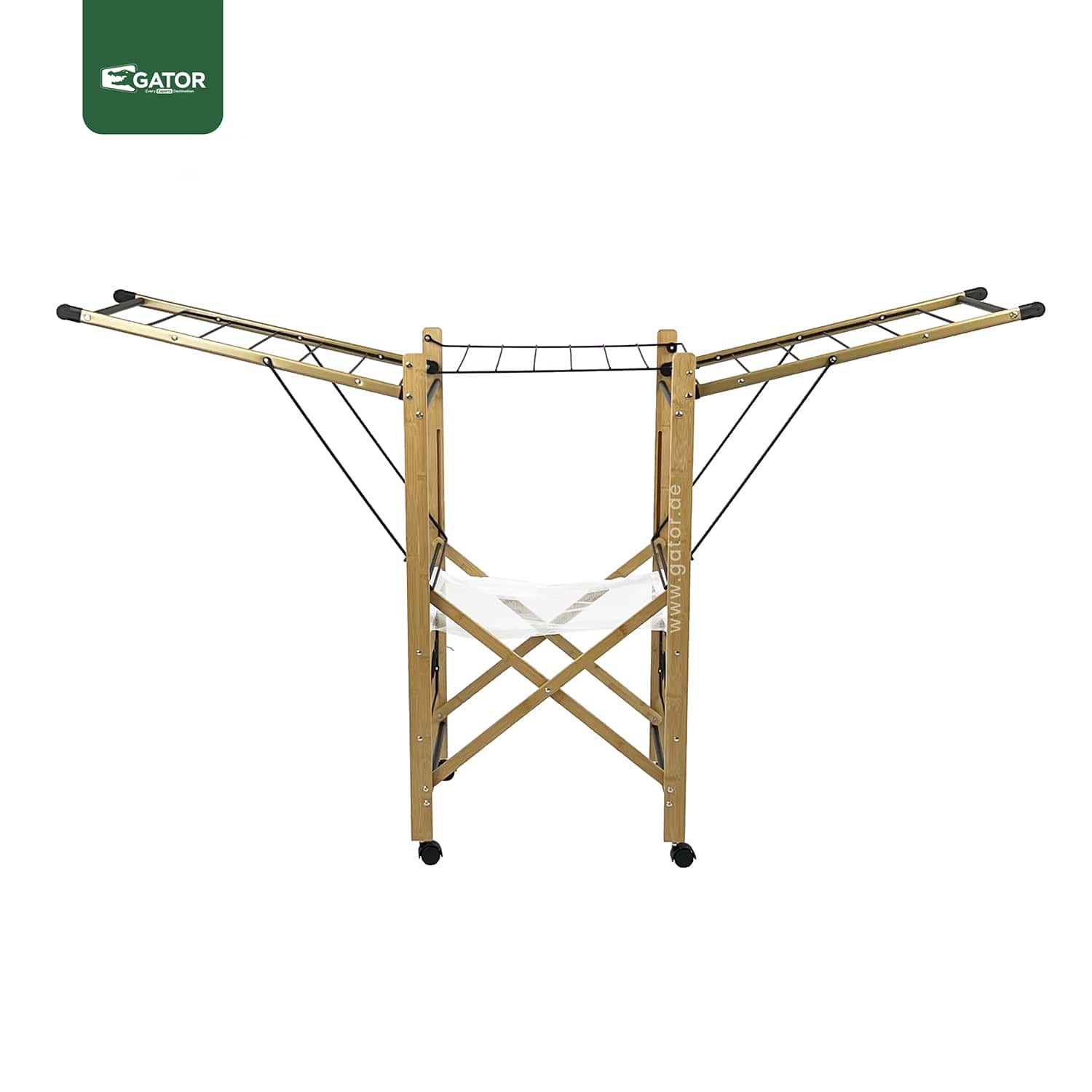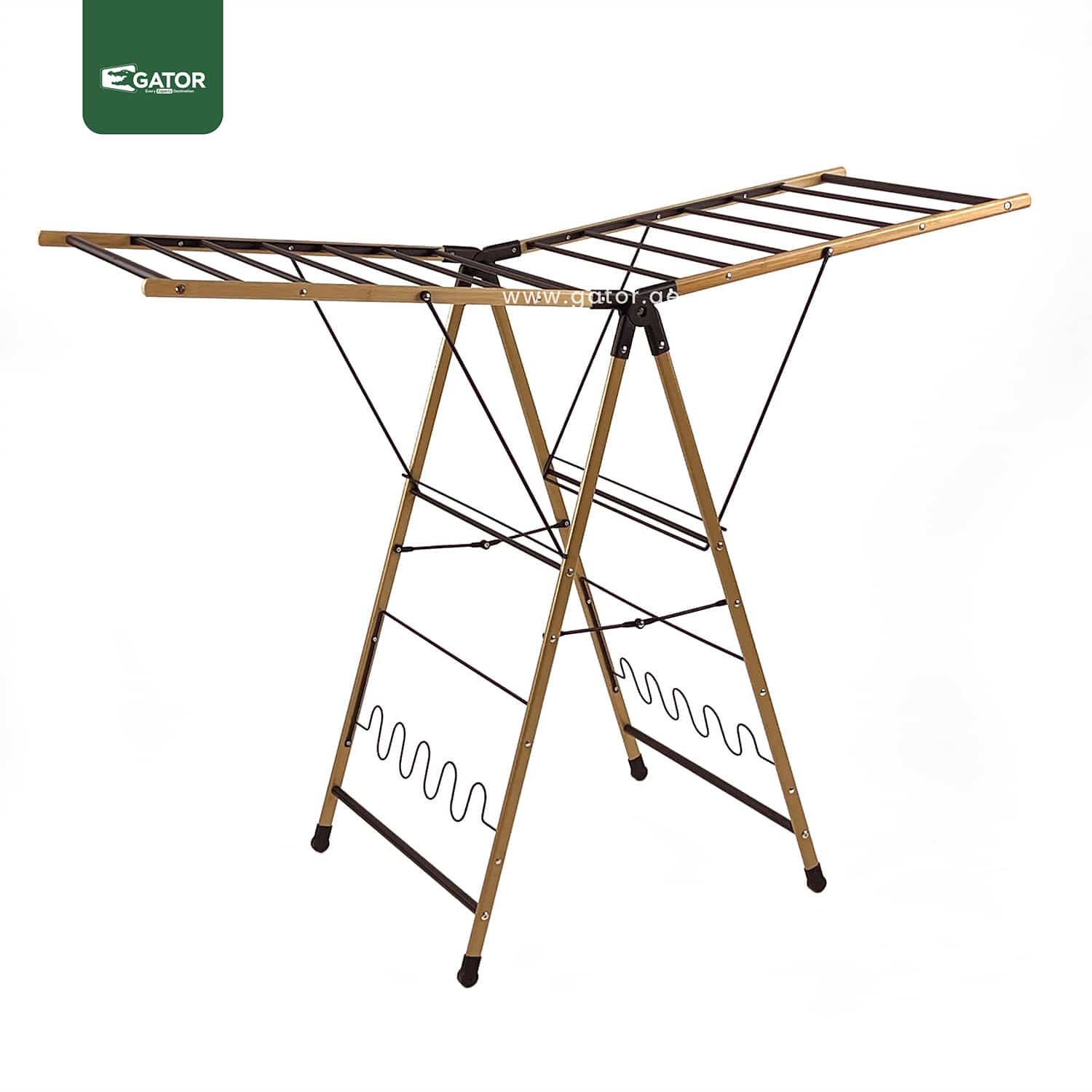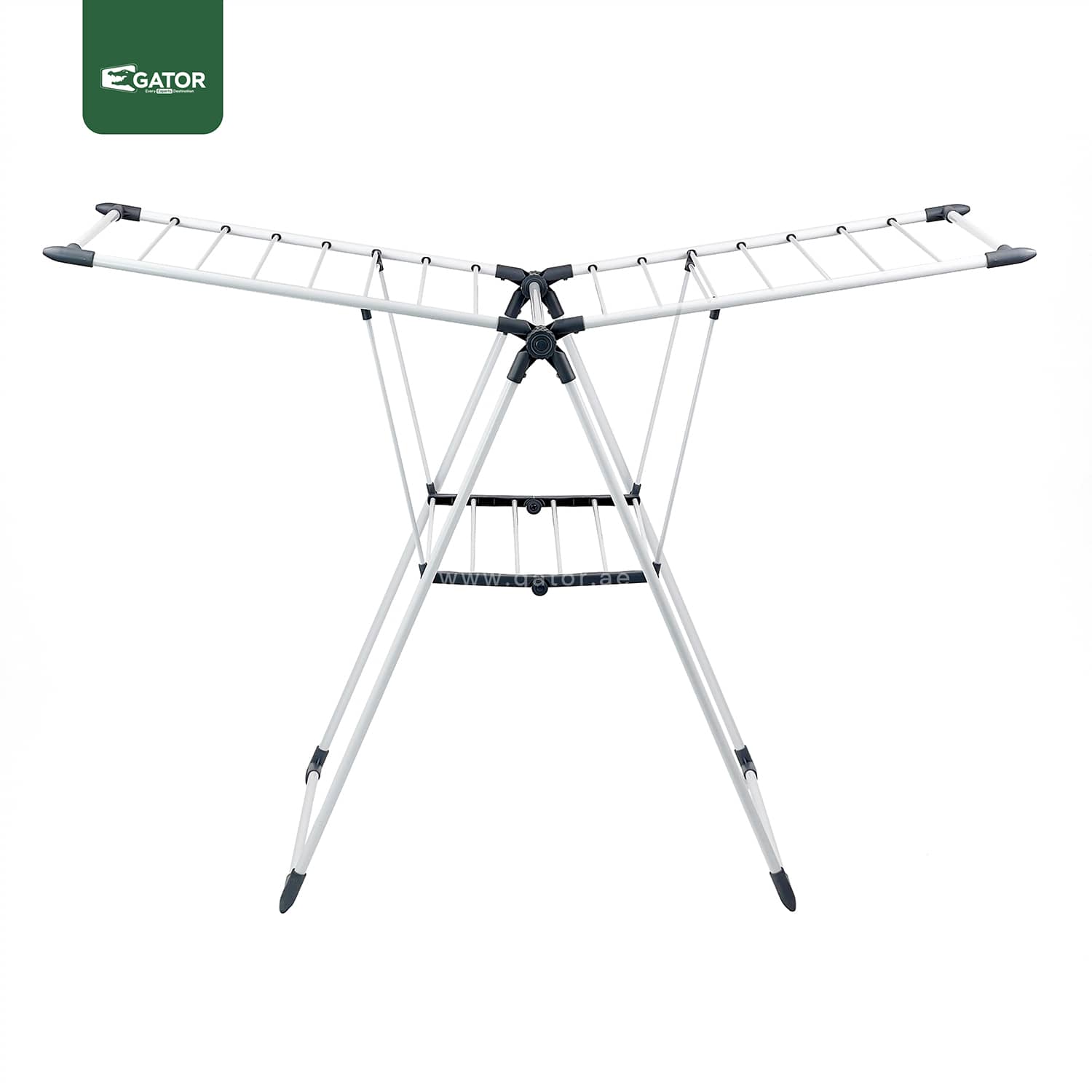 GATOR | Portable Clothes Drying Rack   Equipped with 4 aluminum alloy support leg with wheels. Easy to move and doesn’t required more space to store after use. Four legs with universal wheels 360 rotation convenient for cleaning and moving. Featuring 16 aluminum alloy drying rods, this rack offers ample space for hanging clothes, while … Read more