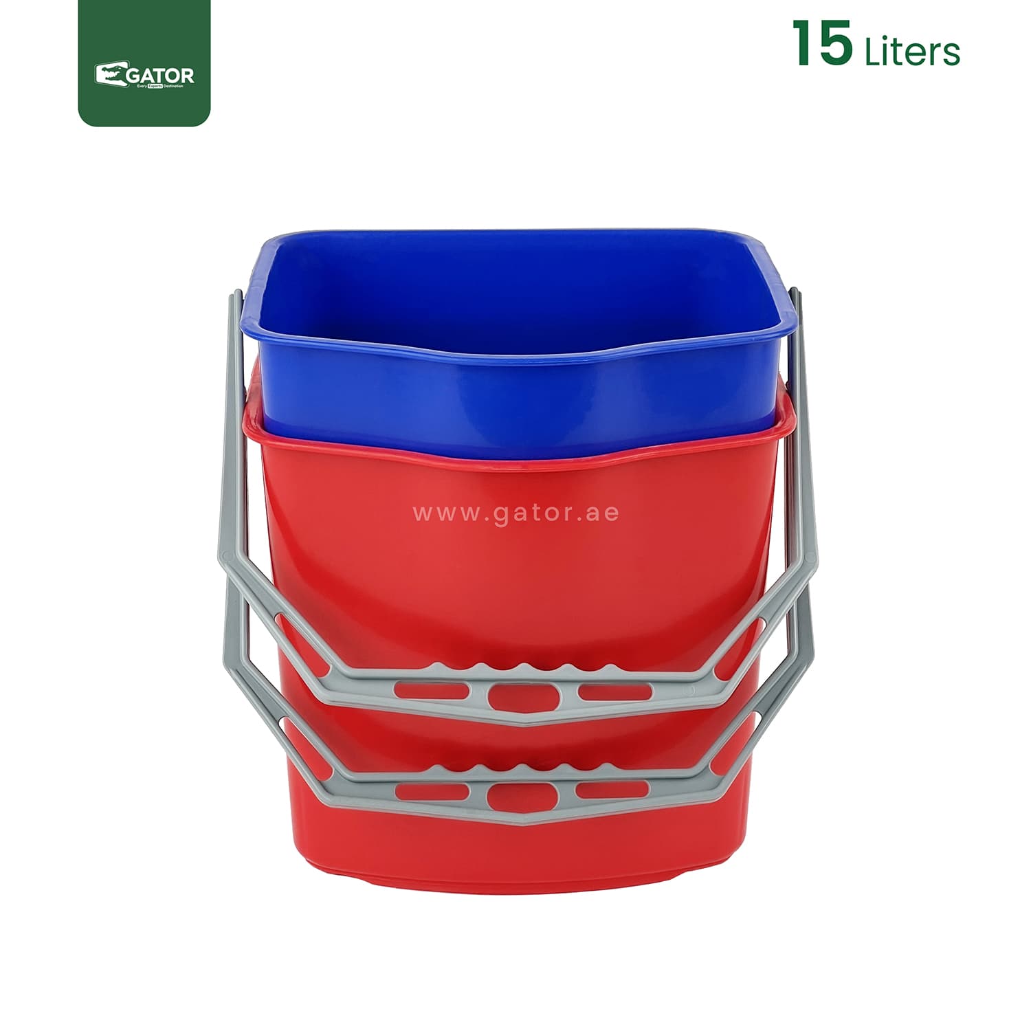 Mop Bucket with Wheel, capacity: 15 liters, available in gray, blue, beige, and red Easy to move and spacious for efficient cleaning.