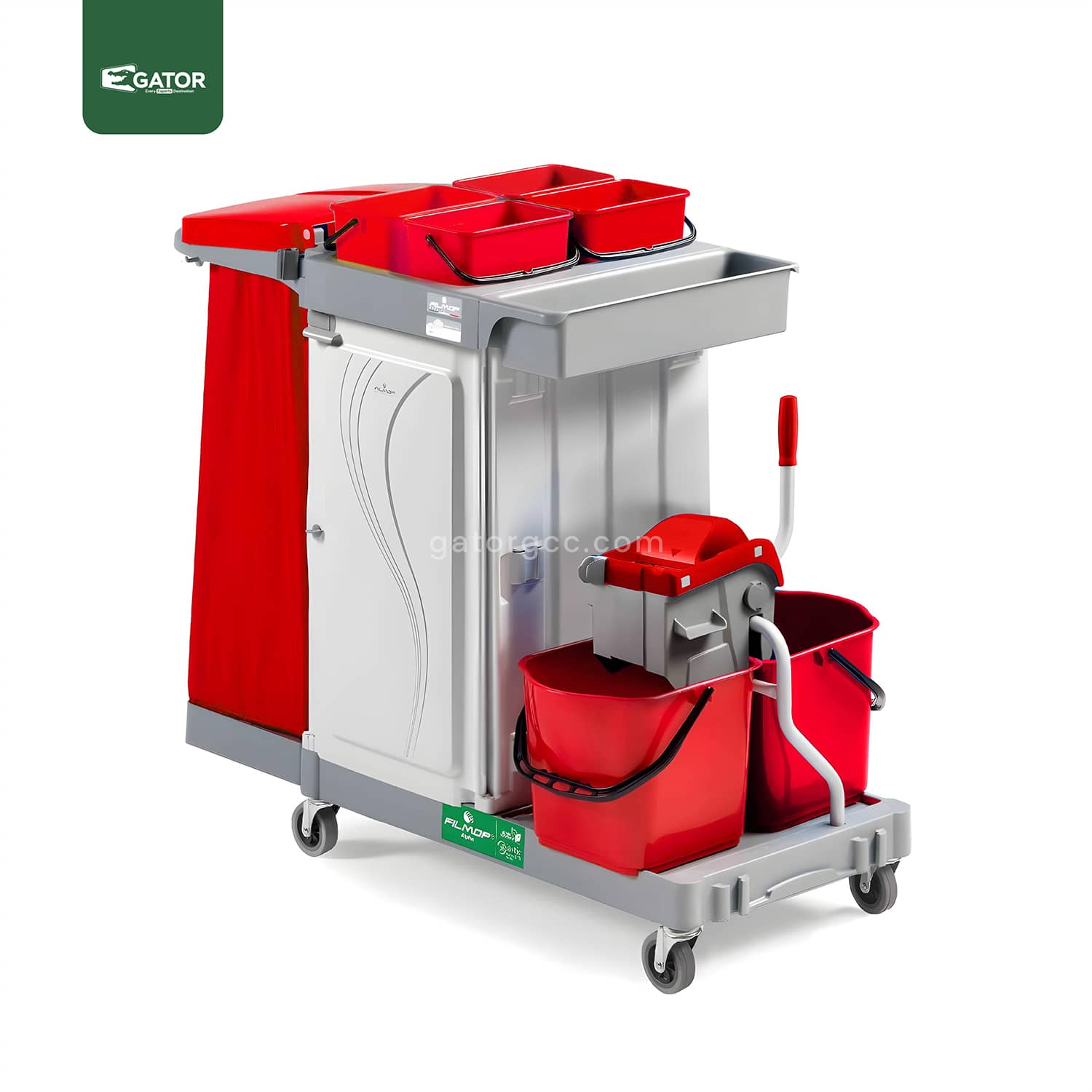 A multifunction trolley is the perfect utility tool to help your cleaning staff keep their cleaning chemicals and supplies organized while they work. Cleaning trolleys serve an additional function in providing easy access to supplies, thereby reducing downtime and increasing the overall productivity of your cleaning operations.