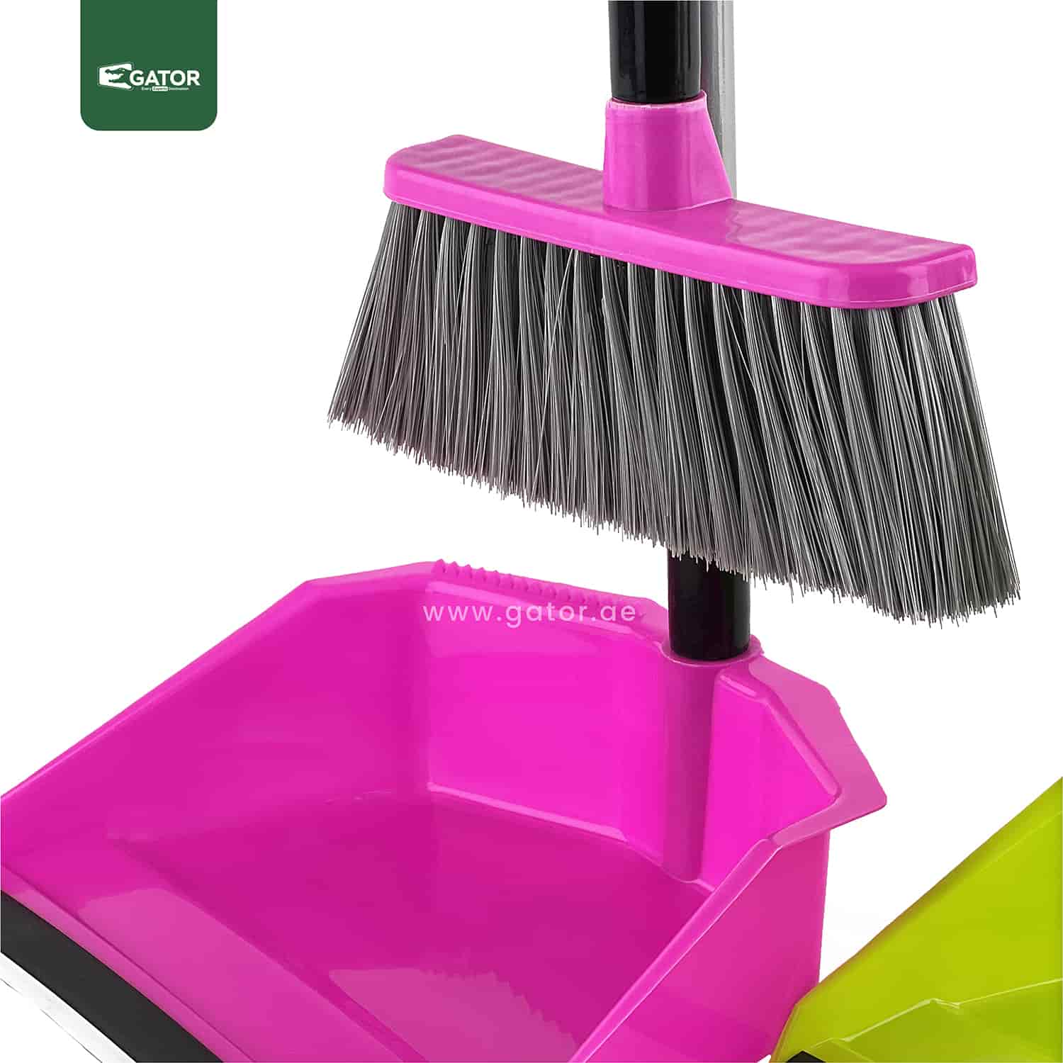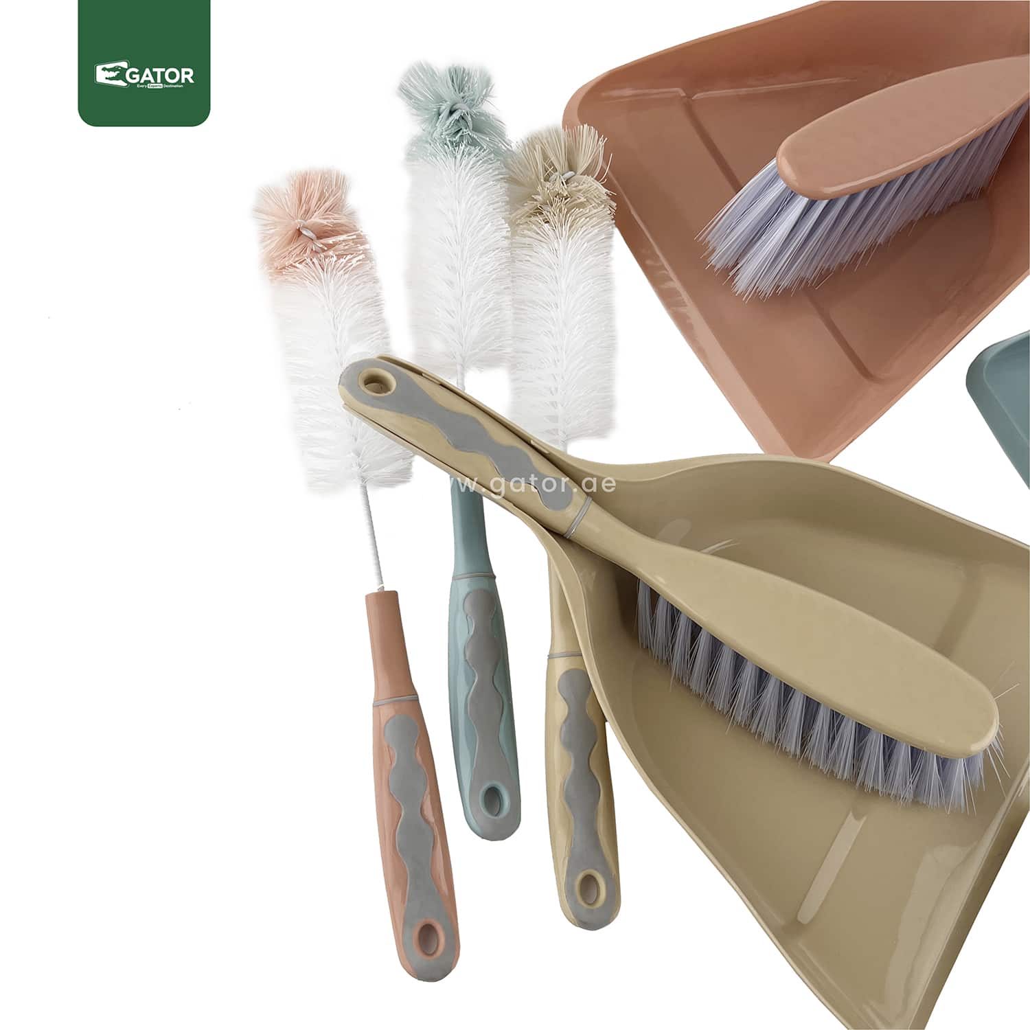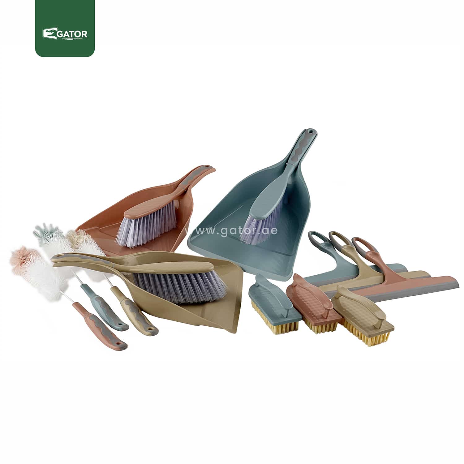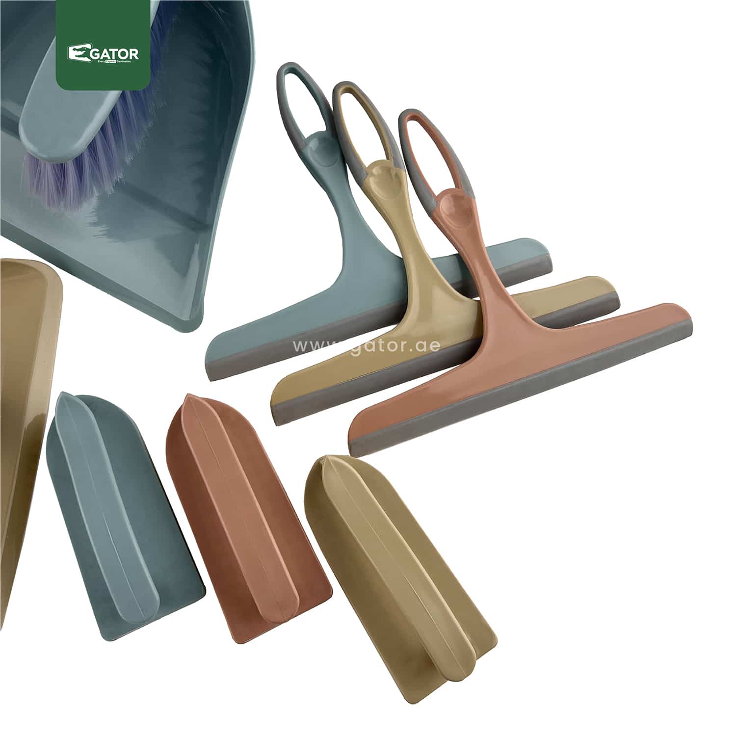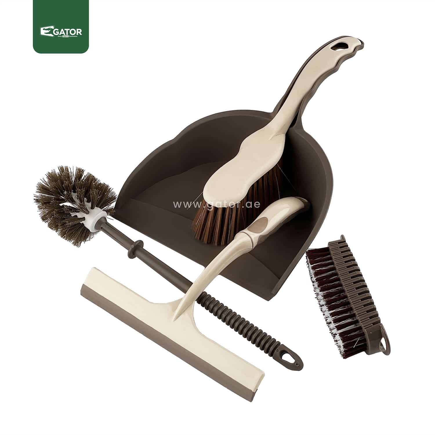 DP07-30cm cleaning brush with 15cm wood-style handle and 20cm dustpan with rubber edge. Clip-on design for easy storage.