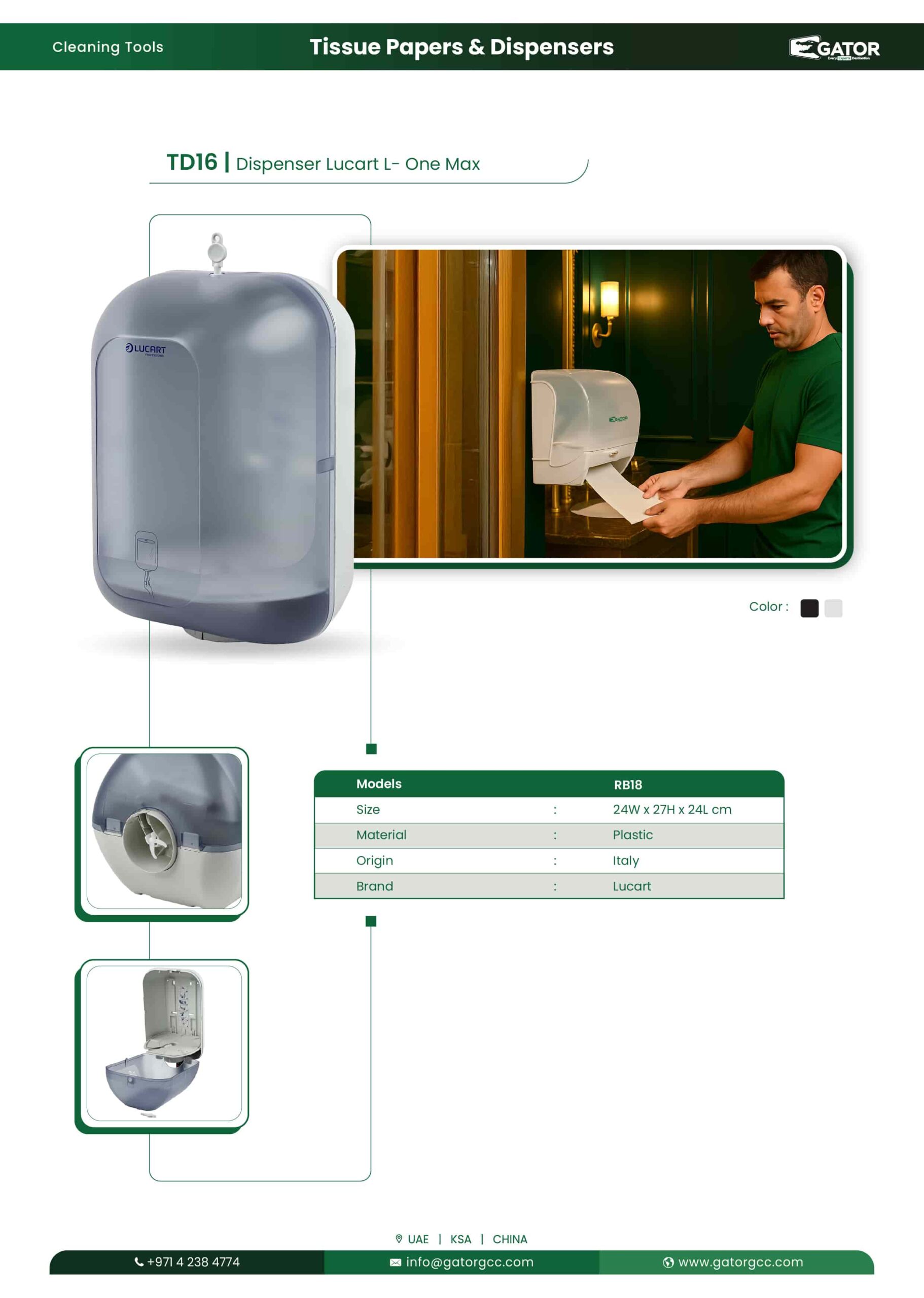 Center-Pull Tissue Dispenser Transperant Material: Plastic Brand: Lucart Origin: Italy