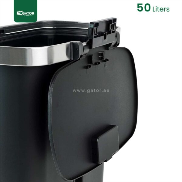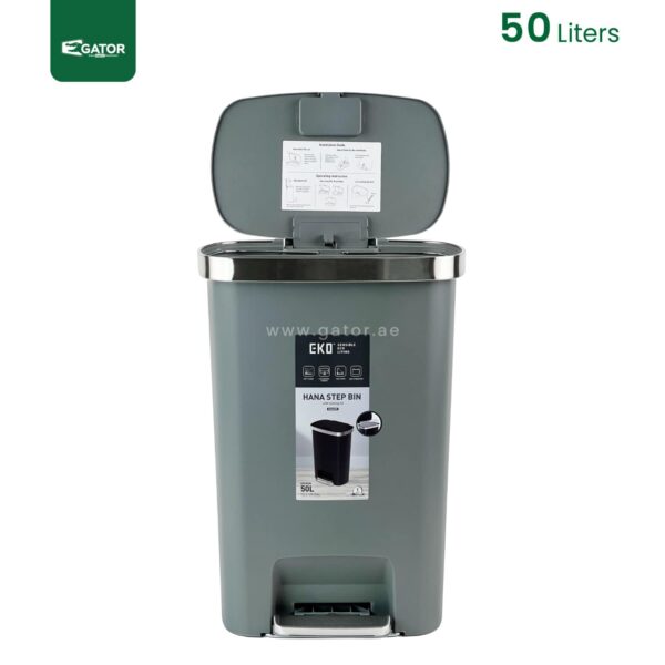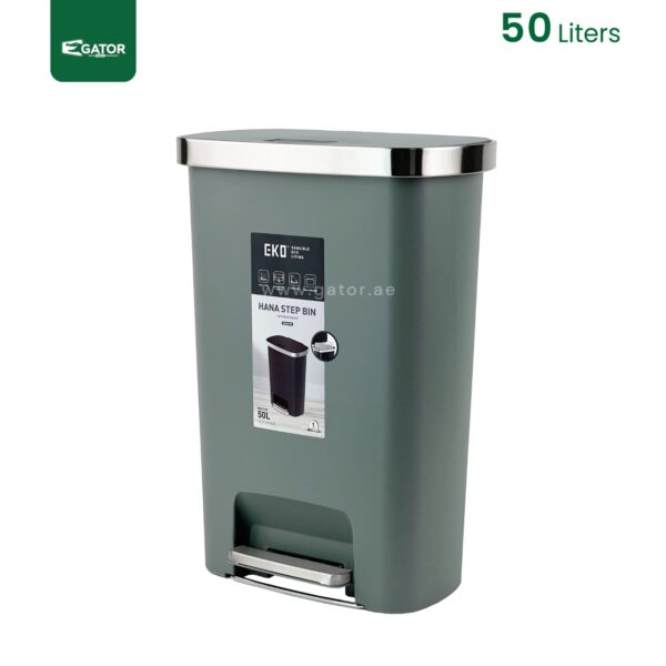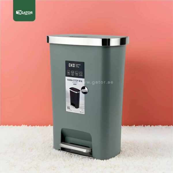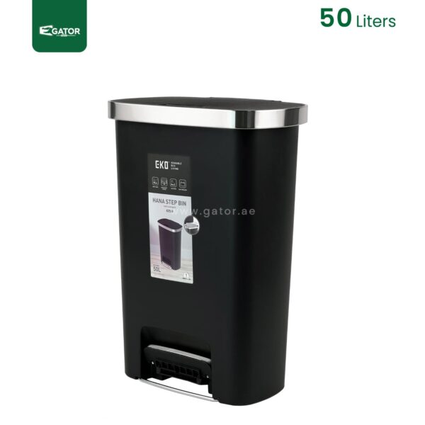 EKO flagship 50L step bin in sophisticated black or gray, crafted for UAE luxury spaces and Saudi Arabian premium venues. Features elite finishing, perfect for Dubai hotels, Abu Dhabi offices, and Riyadh upscale locations. Key Features: