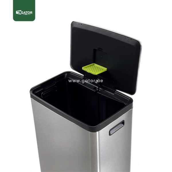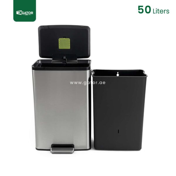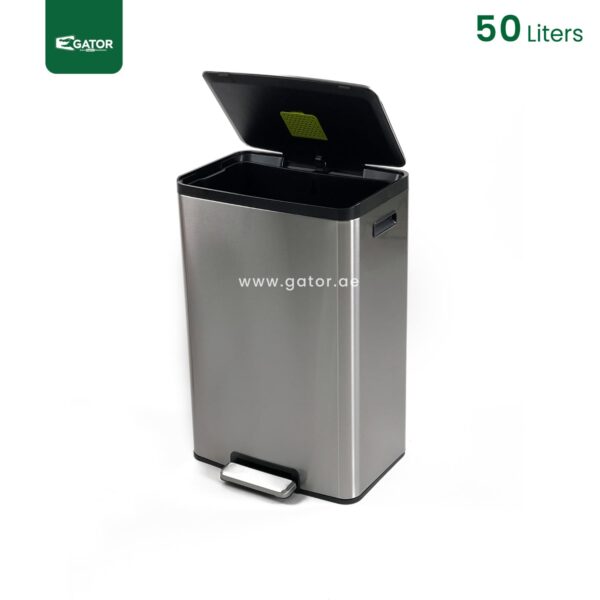 Upgrade your waste management with this sleek and spacious 50-liter rectangular step bin. Designed for high-traffic areas, it features a soft-close lid mechanism that eliminates loud slamming, ensuring quiet and hygienic disposal. The premium stainless steel construction provides durability and a modern aesthetic, while the pedal-operated system enables hands-free use, reducing cross-contamination and maintaining a cleaner environment.