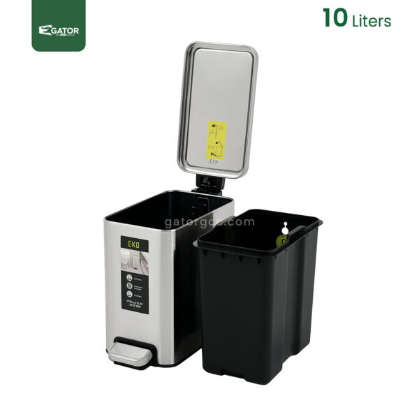 Revolutionize your waste management with this sleek and space-saving 6L & 10L rectangular step bin. Crafted with a stainless steel exterior and soft-close lid technology, it ensures quiet and hygienic disposal. The black PP liner enhances odor control and simplifies cleaning, making it an ideal choice for modern interiors. Its slim rectangular profile fits seamlessly into tight spaces without compromising on capacity.