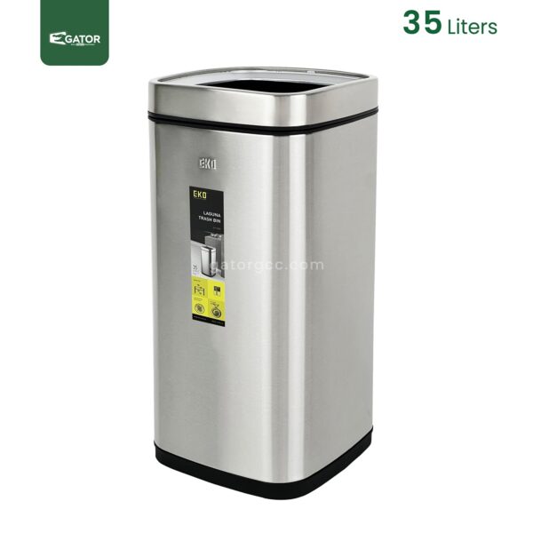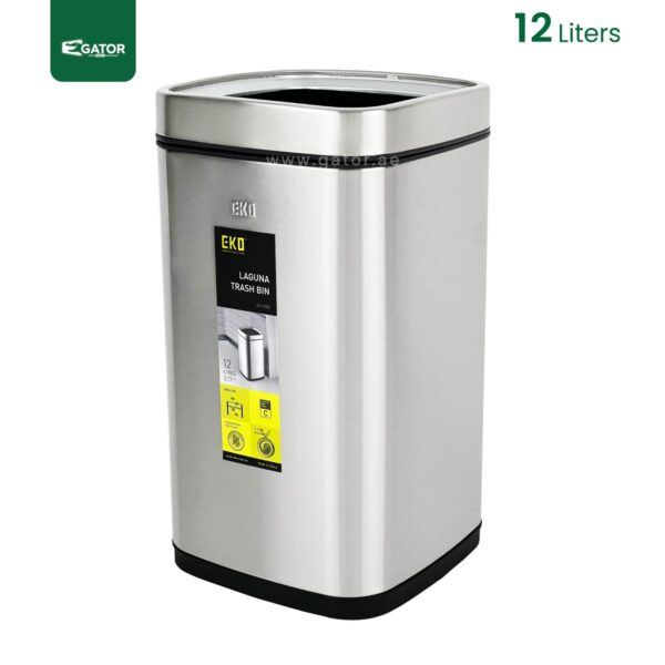 The Contemporary Open-Top Bin combines modern design with practical functionality. Crafted from fingerprint-resistant stainless steel, it features a sleek square design with elegant black trim for a sophisticated touch. The hidden bag fixing system ensures a neat appearance by concealing excess bag material.