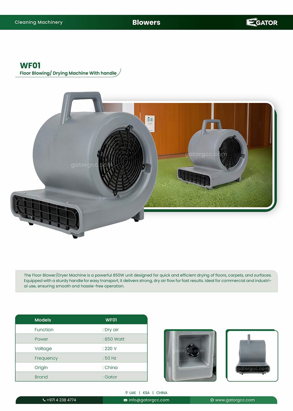 The ergonomic handle allows for easy transport and positioning, ensuring maximum convenience during use. Whether you’re drying floors after cleaning or air-drying surfaces, this blower/dryer is an essential tool for efficient maintenance.