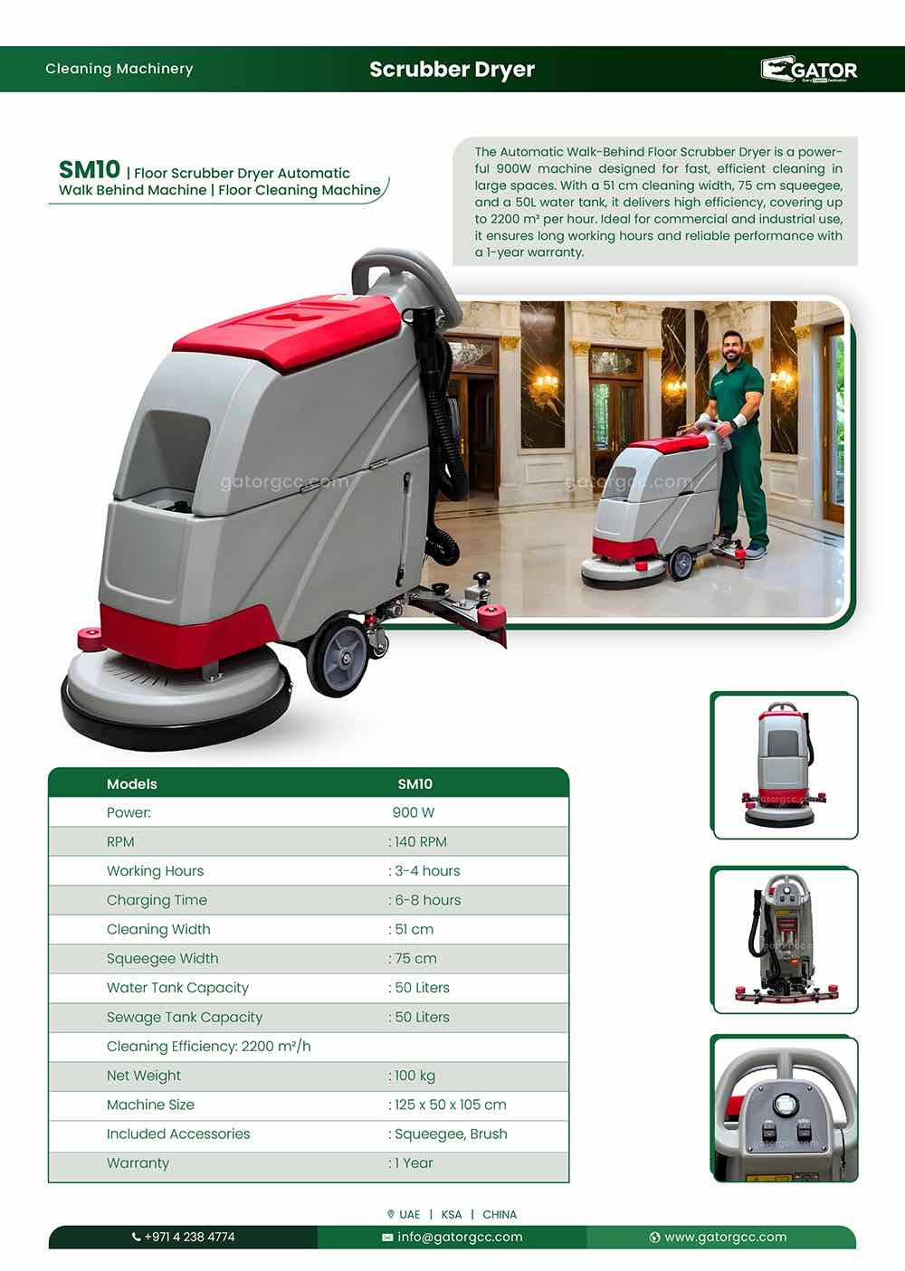 - Wide Cleaning Coverage: 51 cm cleaning width & 75 cm squeegee width for efficient performance.