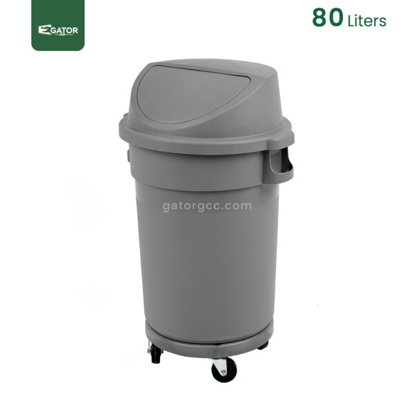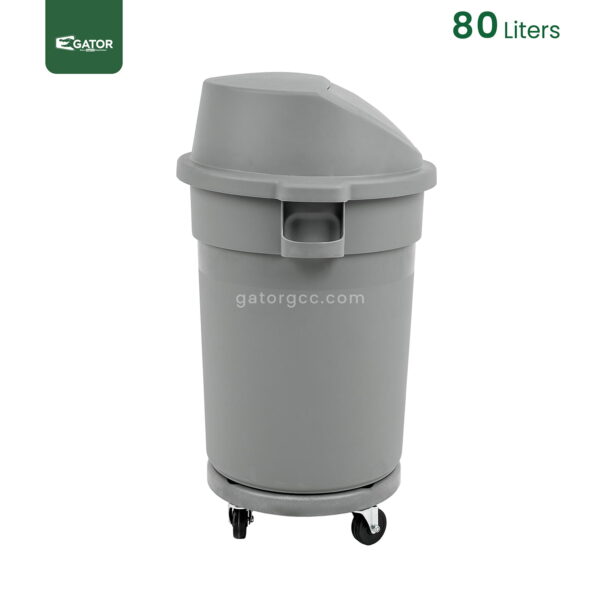 Versatile 80L mobile waste bin designed for UAE businesses and Saudi Arabian institutions. Ideal for Dubai restaurants, Abu Dhabi cafeterias, and Riyadh commercial spaces.