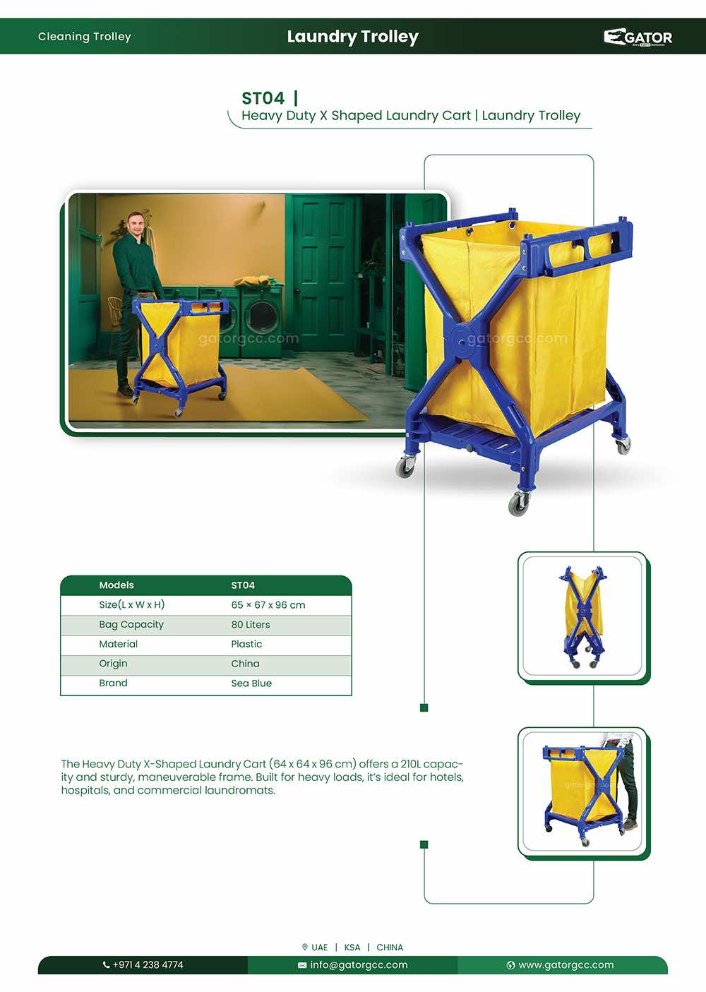 The Heavy Duty X Shaped Laundry Cart is designed to handle the toughest laundry loads with ease. With a generous 210-liter capacity and robust dimensions of 64 x 64 x 96 cm, this cart offers ample space while maintaining an efficient and stable structure. Its heavy-duty X-shaped frame ensures durability and easy maneuverability, making it ideal for high-volume laundry operations in hotels, hospitals, and commercial laundromats. A reliable and sturdy solution for all your laundry transport needs.