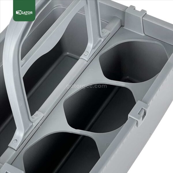 Looking for a practical way to organise and transport your cleaning essentials. This durable grey plastic carry basket is designed with two spacious compartments and a special bottle holder, making it the perfect? companion for both home and professional cleaning tasks Lightweight yet strong, it ensures comfort and efficiency in every use.