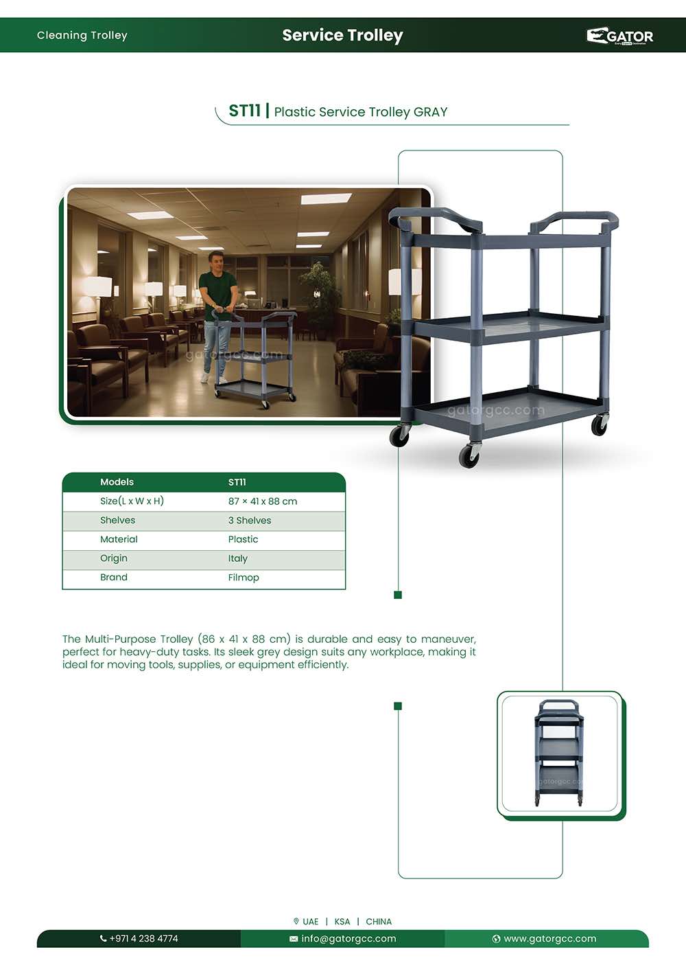 Introducing the versatile Multi-Purpose Trolley, your go-to solution for all kinds of transport needs. With a spacious size of 86 x 41 x 88 cm, it’s designed to handle heavy-duty tasks while maintaining smooth mobility. Available in Grey , this trolley combines durability and style for any workplace or warehouse. Whether you’re moving supplies, tools, or equipment, this trolley will help you get the job done effortlessly and efficiently.