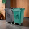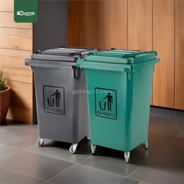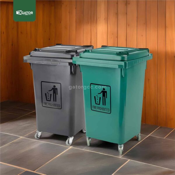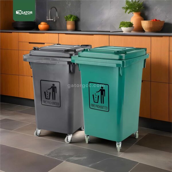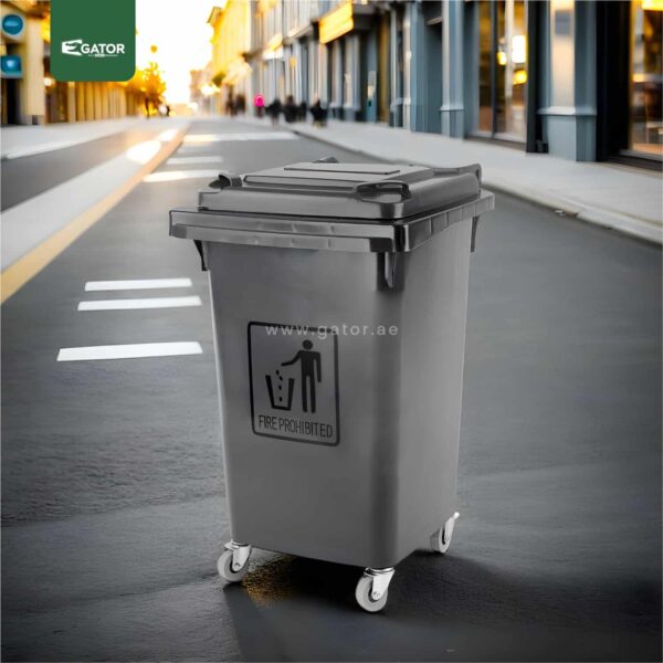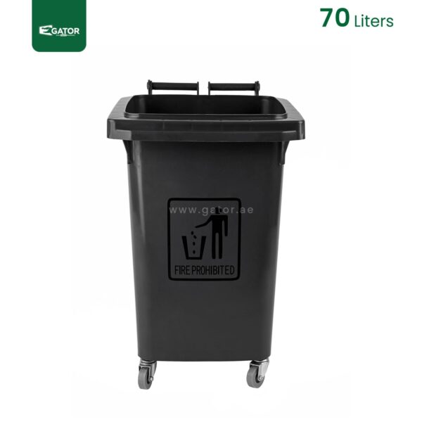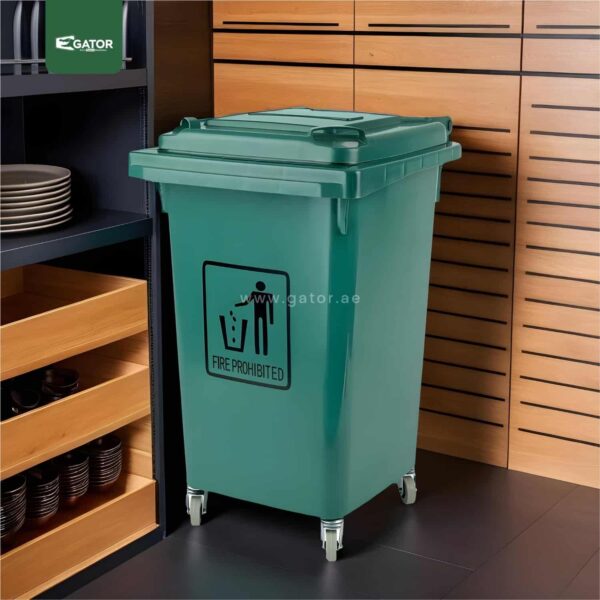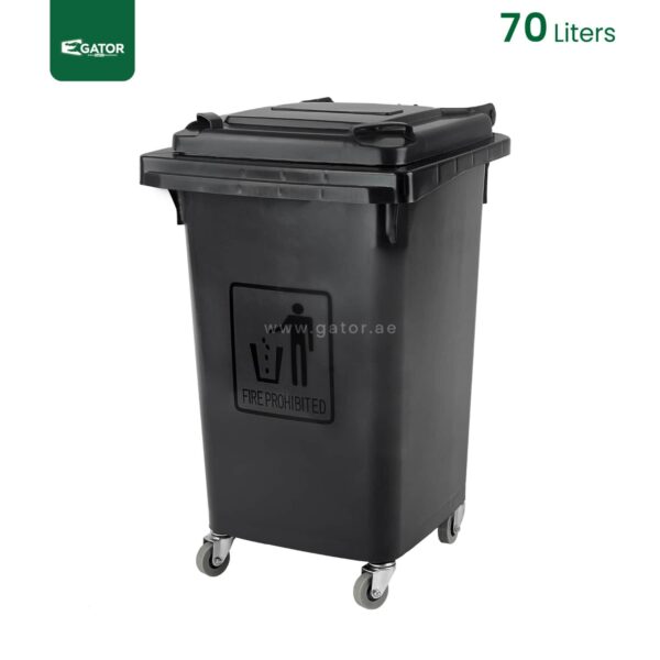 Versatile 70L mobile waste bin with wheels and lid, perfect for medium-sized UAE businesses and Saudi Arabian commercial spaces. Ideal for Dubai restaurants, Abu Dhabi cafes, and Sharjah retail locations.