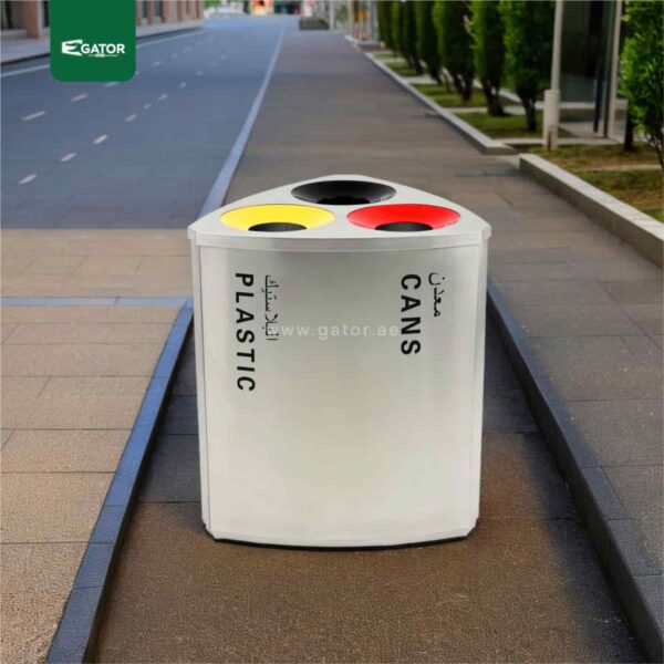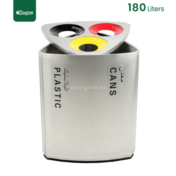 Triangular Stainless Steel Recycle Bin — 180 Liters Capacity