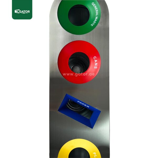 Discover our premium recycling bin stainless steel, engineered for efficient waste management in commercial spaces. This professional 4-compartment system features color-coded bins for streamlined waste segregation.