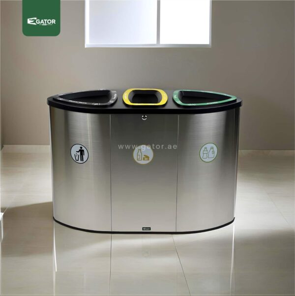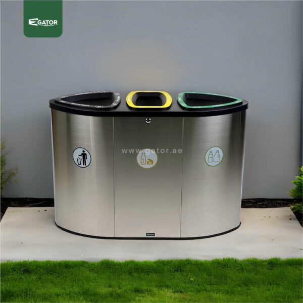 High-end stainless steel recycling station with 3×60L capacity, designed for UAE airports and Saudi Arabian facilities. Perfect for Dubai metro, Abu Dhabi hospitals, and Riyadh public spaces. Key Features: