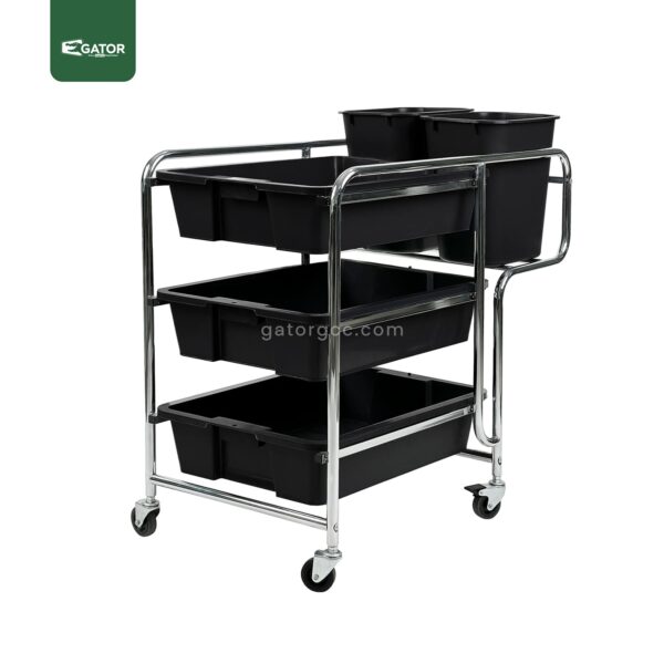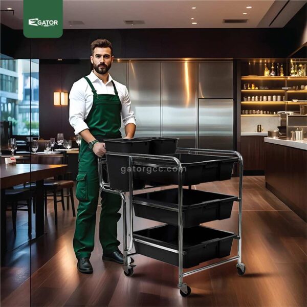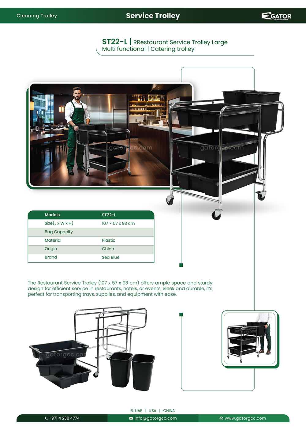 The Restaurant Service Trolley is designed to elevate your service efficiency. With a generous size of 105 x 56 x 100 cm, this trolley offers ample space to carry trays, supplies, or equipment effortlessly. Perfect for use in restaurants, hotels, or event spaces, its sturdy design ensures reliable performance in high-demand environments. The sleek construction not only provides durability but also adds a professional touch to your service area. Organize and transport everything you need with ease, making your service faster and more efficient.