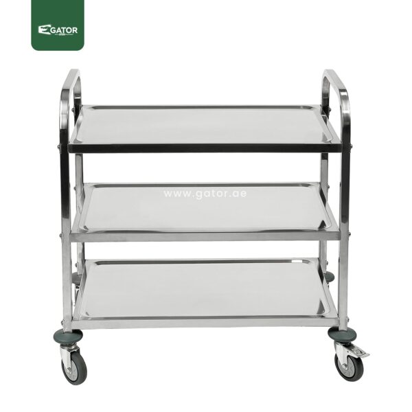Get the job done with style and durability using the Stainless Steel Service Trolley, available in Large, Medium, and Small sizes. The Large trolley measures 96 x 50 x 96 cm, perfect for heavy-duty tasks. The Medium trolley (86 x 45 x 90 cm) offers a more compact solution for everyday use, while the Small trolley (75 x 40 x 86 cm) is ideal for tight spaces. Each trolley features a sleek stainless steel design, making it both durable and easy to clean, perfect for use in kitchens, restaurants, and warehouses. Choose the perfect size for your needs and elevate your service efficiency